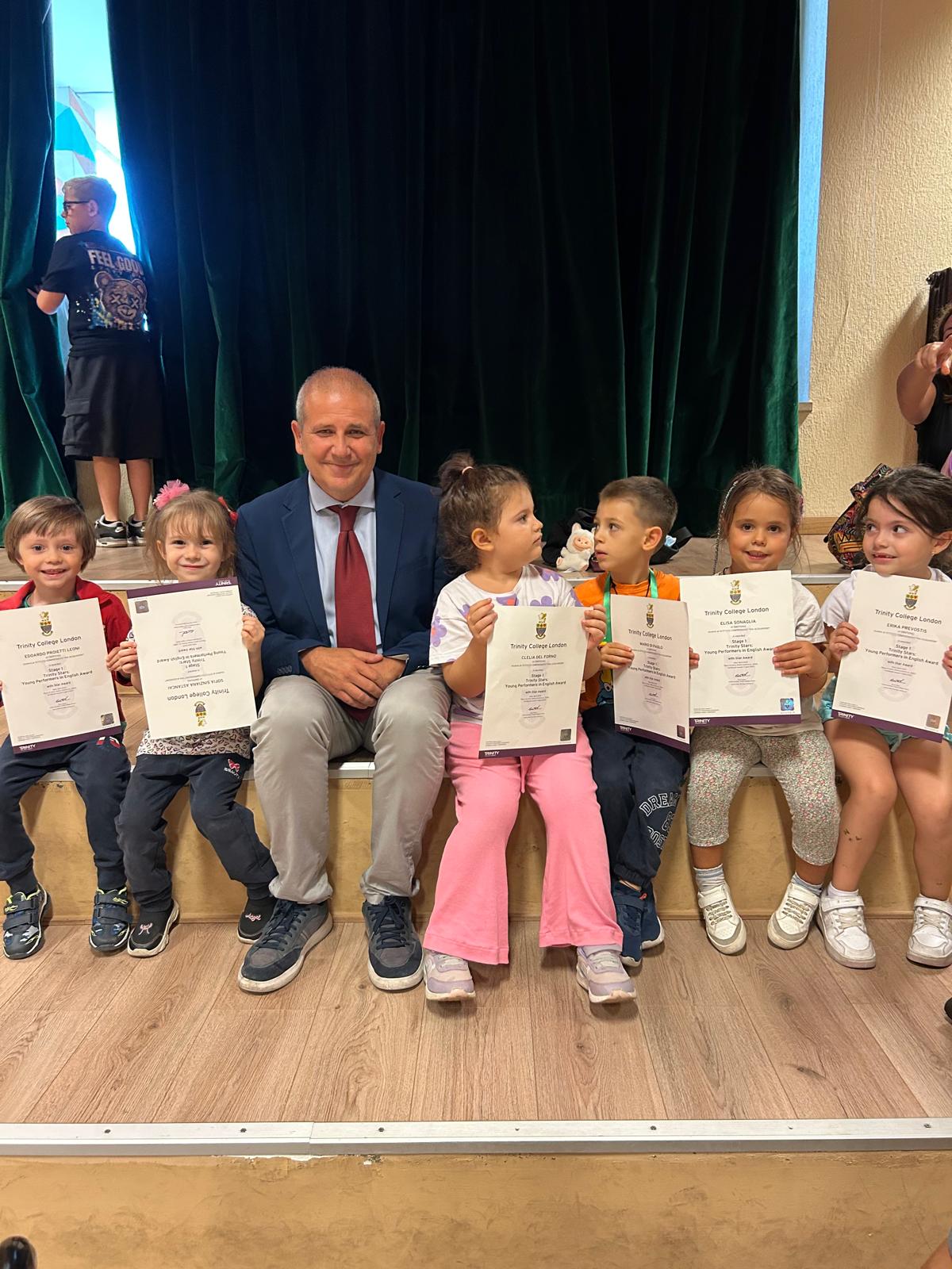 Nel corso della cerimonia sono stati consegnati anche gli attestati ai bambini della scuola dell’infanzia che hanno partecipato al progetto Trinity Stars.